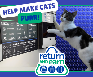 Over forty years later we’re pleased that Cat Protection is once again calling on supporters to lend a paw and recycle bottles and cans to make cats purr! Even better the Return and Earn app makes recycling and donating supurr easy! It has a handy map to help you find your nearest Return point plus the option to set the payout to a charity of your choice so your 10c refunds can make a pawsitive difference to a cause close to your heart.