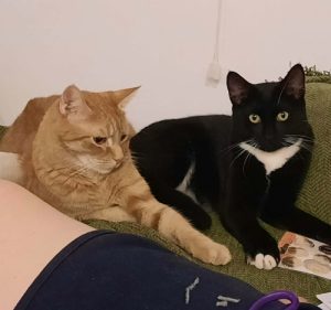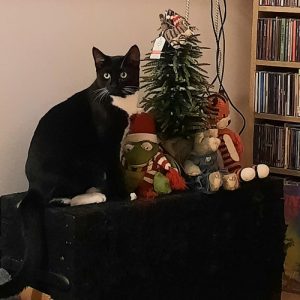 We adopted Spatz (previously known as Cary) in November 2025. He has really made himself at home snuggling with his brother on the couch and celebrating his first Christmas with us.
